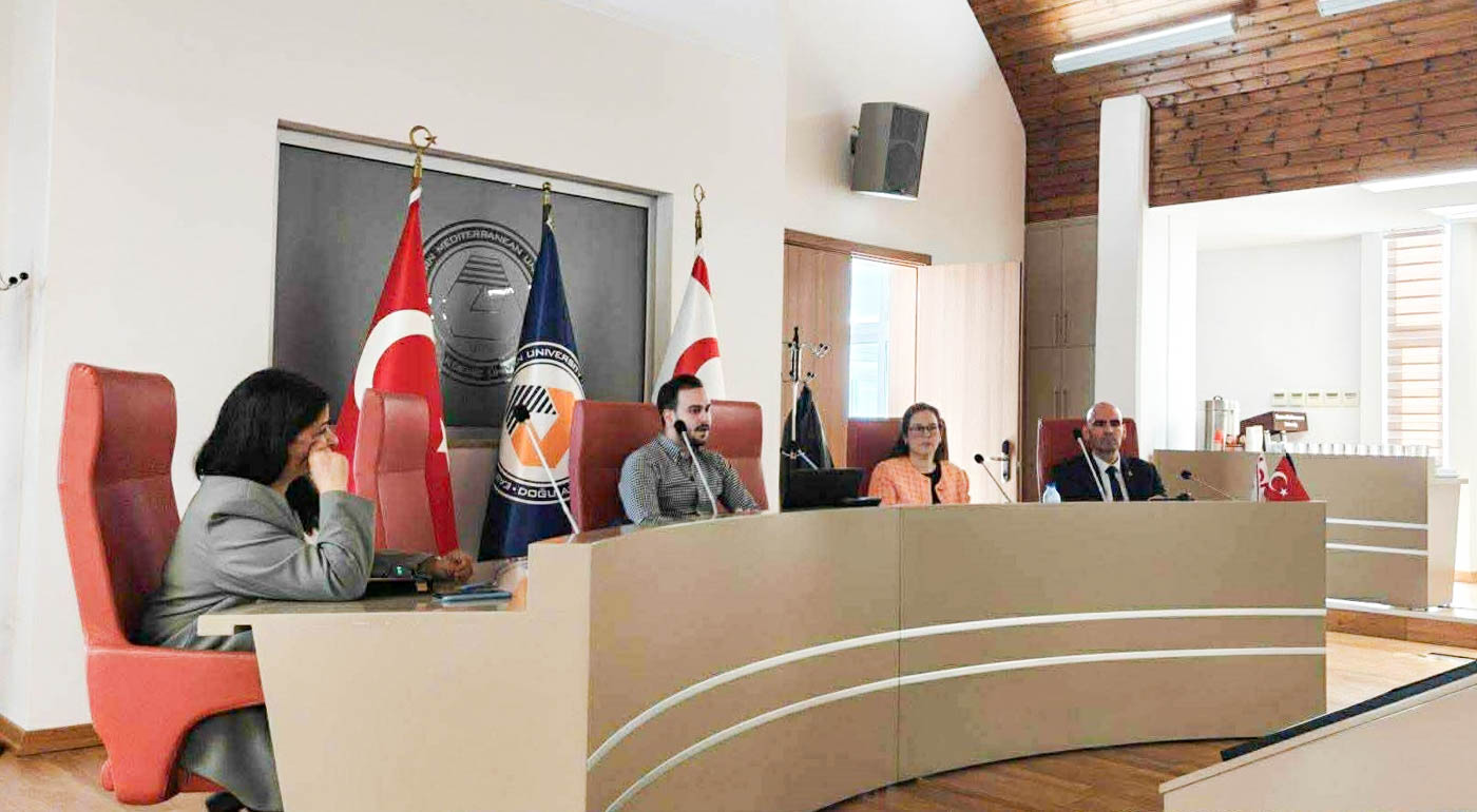 Officials from Constructor University, one of the prominent higher education instructions of Germany, visited Eastern Mediterranean University (EMU). Within the scope of the visit, Alper Demirkan – Regional Manager of the Constructor University – met with EMU students at Senate Meeting Hall, sharing detailed information about the educational programs they offer. EMU Vice Rector for Promotion and Institutional Communication Prof. Dr. Ali Öztüren was also present during the said meeting.